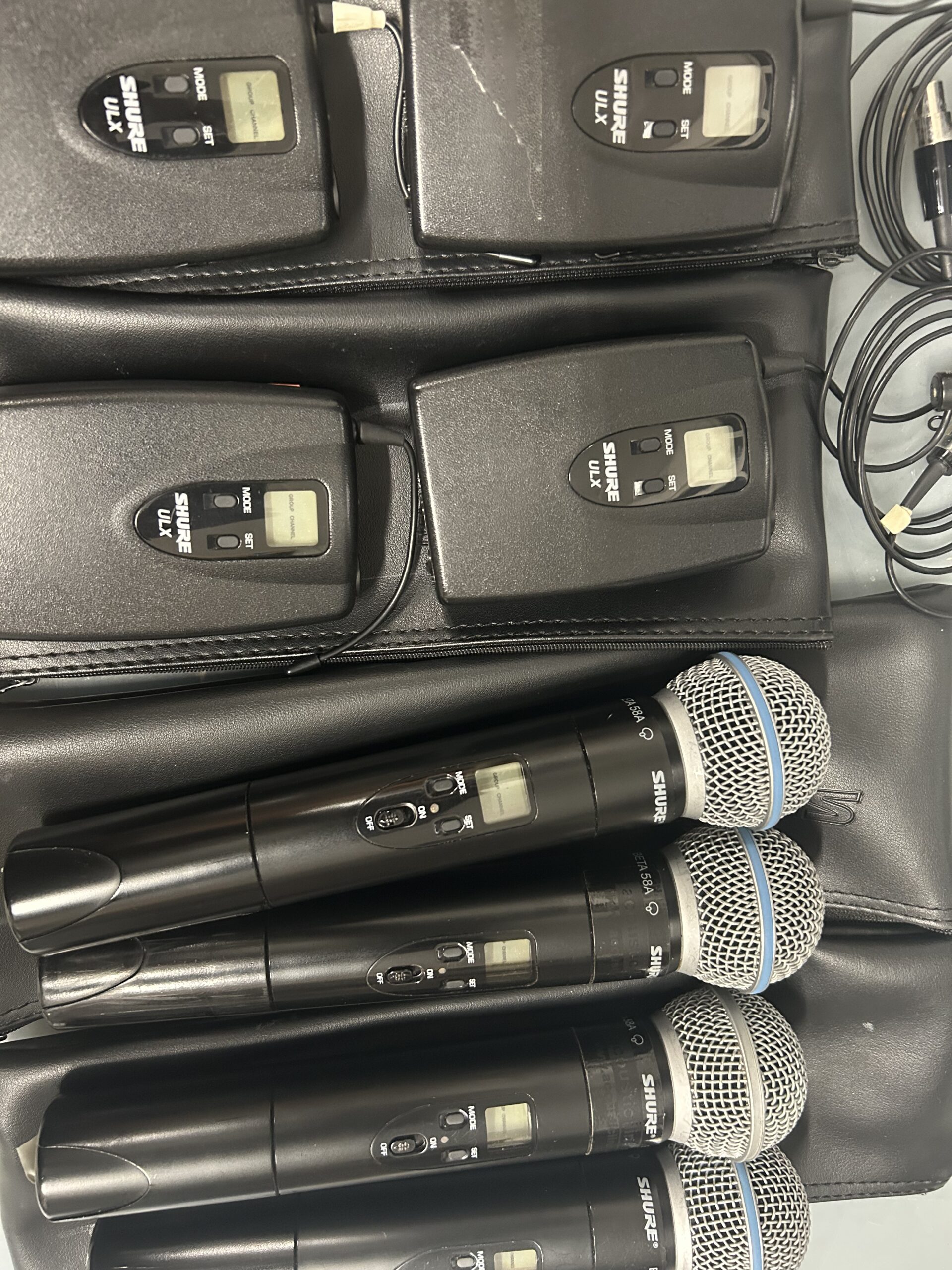 Sistema Inalámbrico Shure ULX – 4 Receptores ULXP4 + 4 Petacas ULX1M2 + 4 Manos Beta58A + 4 Diademas PGA31